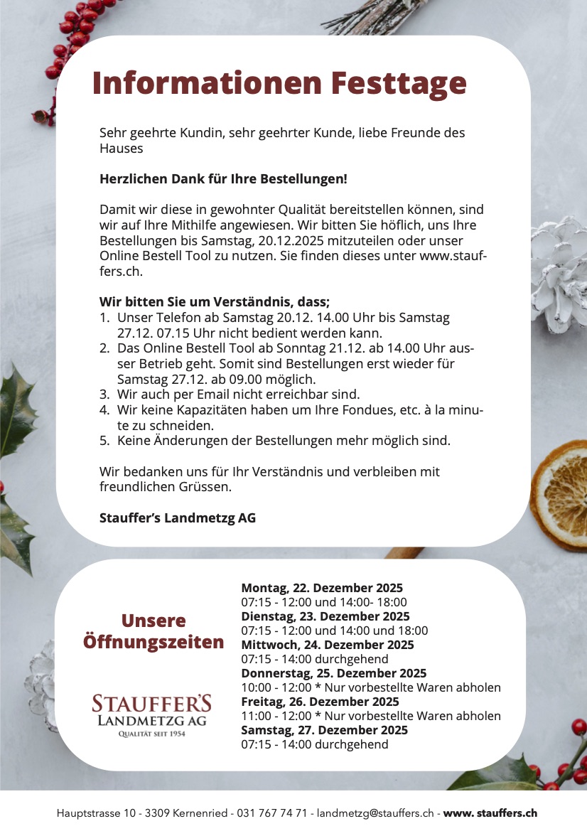 Voranzeige: Samstag, 3.1.2026 bleibt unser Geschäft
